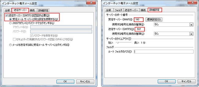* OP25Bが普及しているため、送信ポートを[587]でご案内しています。OP25Bについてはこちらをご覧ください。