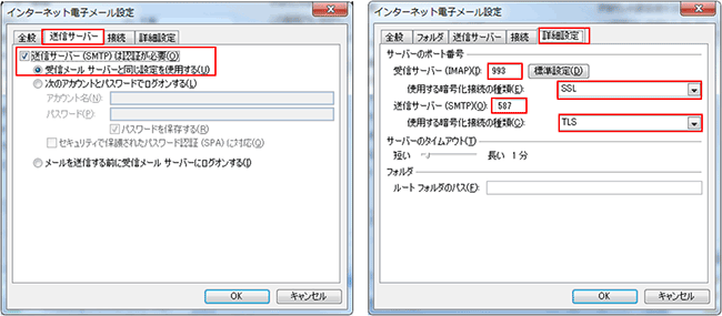 暗号化ありの設定 (IMAP over SSL/SMTP STARTTLS)