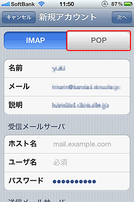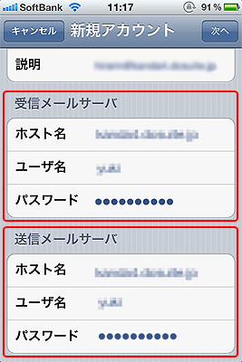 8. 「受信メールサーバ」「送信メールサーバ」情報を入力します。