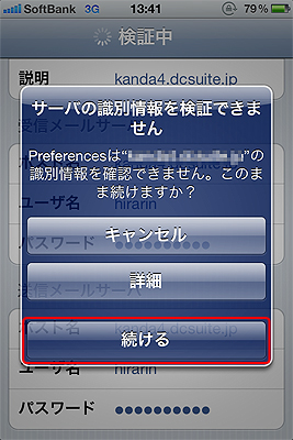 9. 「次へ」をクリックすると、以下のメッセージ画面が表示されますので、「続ける」をタップしてください。