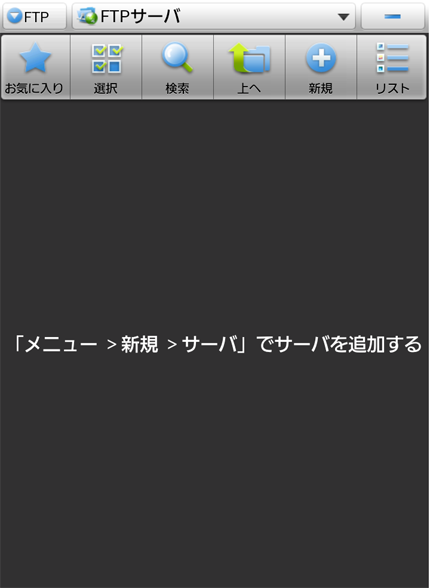 上アイコンメニューの「新規」および「FTP」をクリックします。