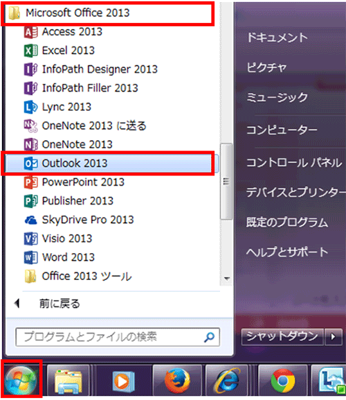 [ Microsoft Office 2013 ] → [Outlook2013] の順にクリックして、