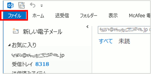 [ファイル]をクリックし、 アカウント情報画面を表示させてください。