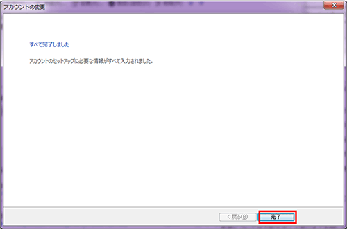 10. 完了画面が表示されますので [ 完了 ] をクリックして設定を終了します。
