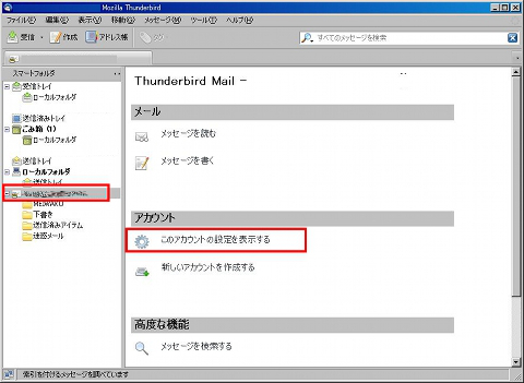 - Thunderbird3.xを起動し、アカウントを選択し、「このアカウントの設定を表示する」をクリックします。